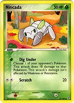Pokemon EX Deoxys Common Card - Nincada 67/107 This card is out of the Pokemon EX Deoxys set, and is playable with the Pokemon TCG Trading Card Game. For the rest of the Pokemon EX Deoxys cards, with pictures of each card, Click Here.